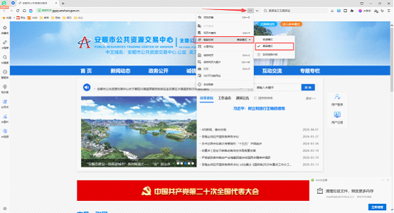打开360安全浏览器,正常访问网址后点击浏览器地址栏末尾的设置按钮,找到“智能切核”功能,选择“兼容模式”即可。(注:360浏览器存在多个版本,下载时请确认软件名称为“360安全浏览器”。)